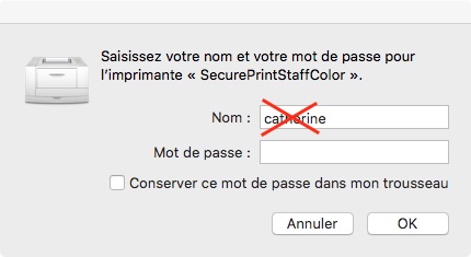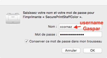 NB: to avoid having to enter these each time you print, check the option “Keep this password in my keychain”