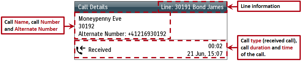 3. Press the View Details softkey to display the call information.
