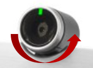 Visual confirmation displays. In active mode, the Video Mute button and the camera’s LED are red lit.