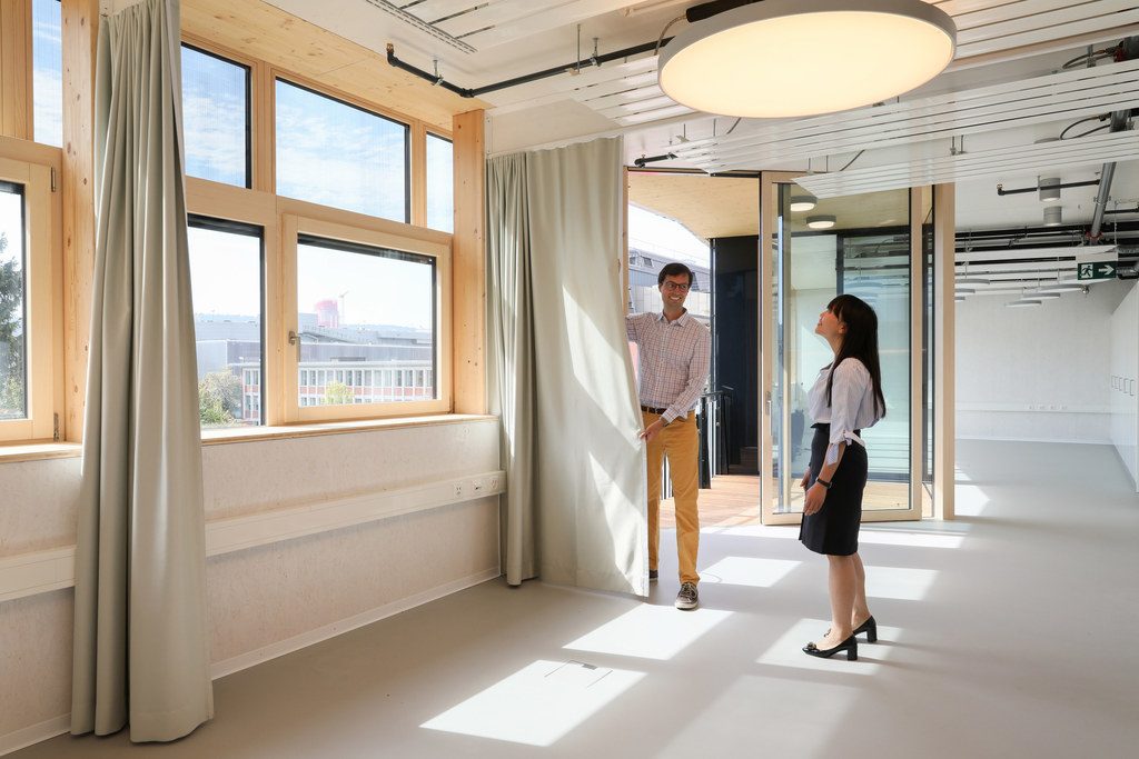 SolAce – which opened its doors today at the NEST building in Dübendorf – is a pilot unit where researchers will test new technology for sustainable living and optimal user comfort. The building will generate more power than it uses (for heating and electricity) and will be carbon neutral or even carbon negative. Intended to be a combined working-living space, it has a bedroom with two separate beds, a kitchen and a living room.