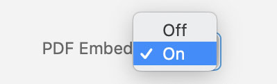 4. In the Attachment Details column on the right, next to the PDF embed option choose